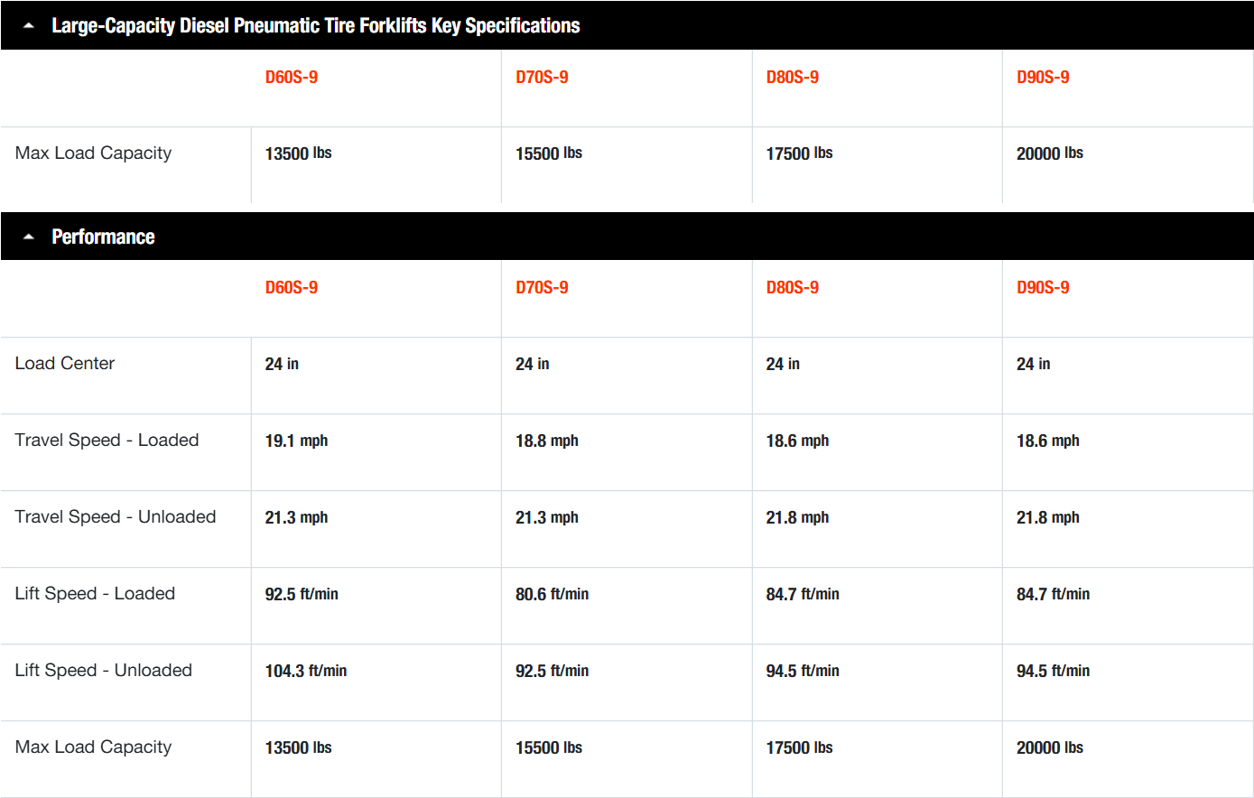 Model-model ini tergabung dalam keluarga Large Capacity Diesel Pneumatic Tire Forklifts versi 9 dari Bobcat / Doosan, dengan kapasitas beban antara sekitar 13,500 lb hingga 20,000 lb (sekitar 6 hingga 9 ton).