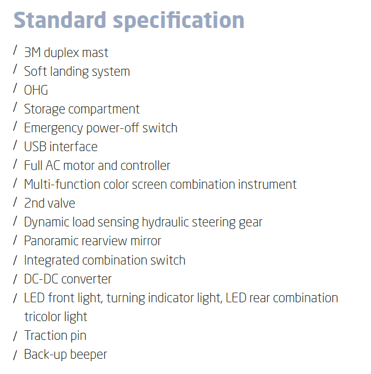 Hangcha X series 4.0-5.0t dengan tenaga baterai lithium-ion adalah forklift elektrik kelas berat yang dirancang untuk memberikan kombinasi kekuatan, efisiensi energi, stabilitas, dan kenyamanan operator dalam aplikasi penanganan material di lingkungan industri besar.
