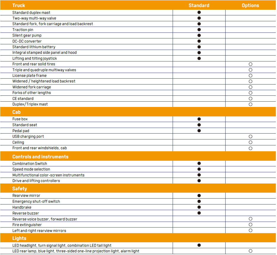 Hangcha XA Series 2.0-3.8t dirancang sebagai forklift listrik light-to-mid duty yang mampu menangani beban antara 2.000 kg hingga 3.800 kg. Dengan tenaga listrik, forklift ini menawarkan operasi tanpa emisi dan lebih tenang dibandingkan model berbahan bakar fosil, sekaligus menekan biaya operasional melalui efisiensi energi yang lebih tinggi.