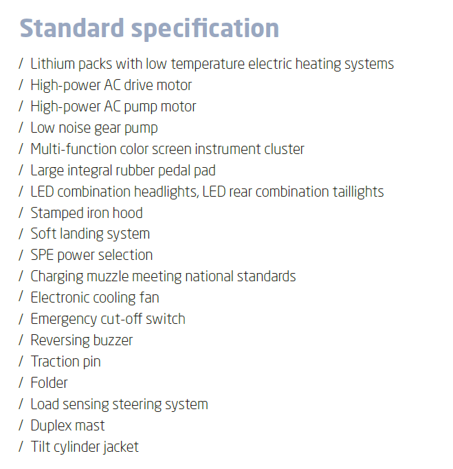Hangcha XC Series 2.0~3.5t merupakan forklift elektrik bertenaga baterai lithium-ion yang dirancang untuk kebutuhan penanganan material menengah di gudang, manufaktur, dan fasilitas logistik modern. Seri ini menawarkan efisiensi tinggi, performa kuat, dan desain yang fleksibel untuk berbagai aplikasi industri.