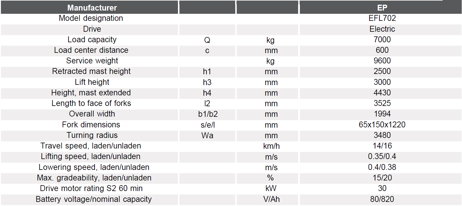 iMOW EFL702 adalah salah satu model forklift listrik heavy duty dari EP Equipment dalam seri EFL yang ditujukan untuk menggantikan forklift berbahan bakar (diesel / LPG) di segmen beban tinggi.