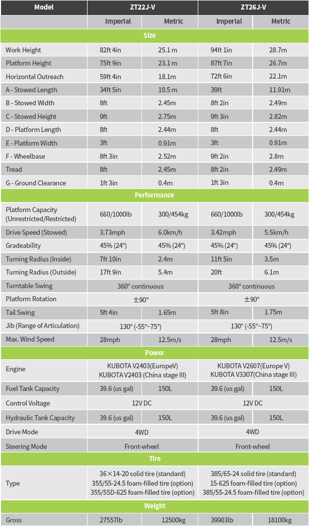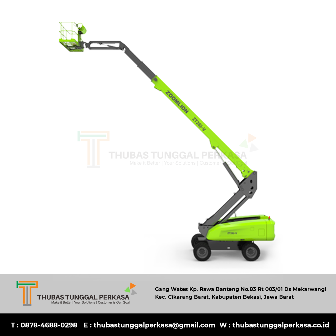 Model ZT26J bisa dikatakan sebagai salah satu produk boom lift teleskopik diesel mereka yang dirancang untuk pekerjaan di luar ruangan (outdoor), dengan medan yang agak berat sekalipun.