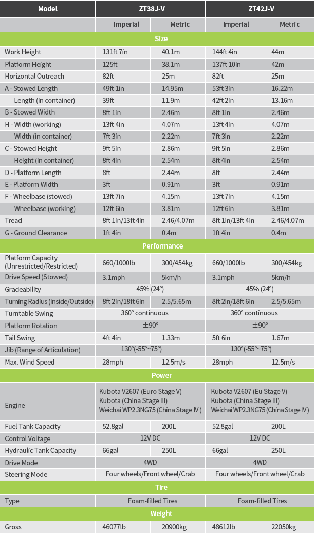 Zoomlion ZT38J adalah salah satu boom lift teleskopik diesel dari Zoomlion yang ditujukan untuk aplikasi luar ruangan (outdoor), medan berat, dan kebutuhan akses tinggi hingga kisaran ~40 meter.
