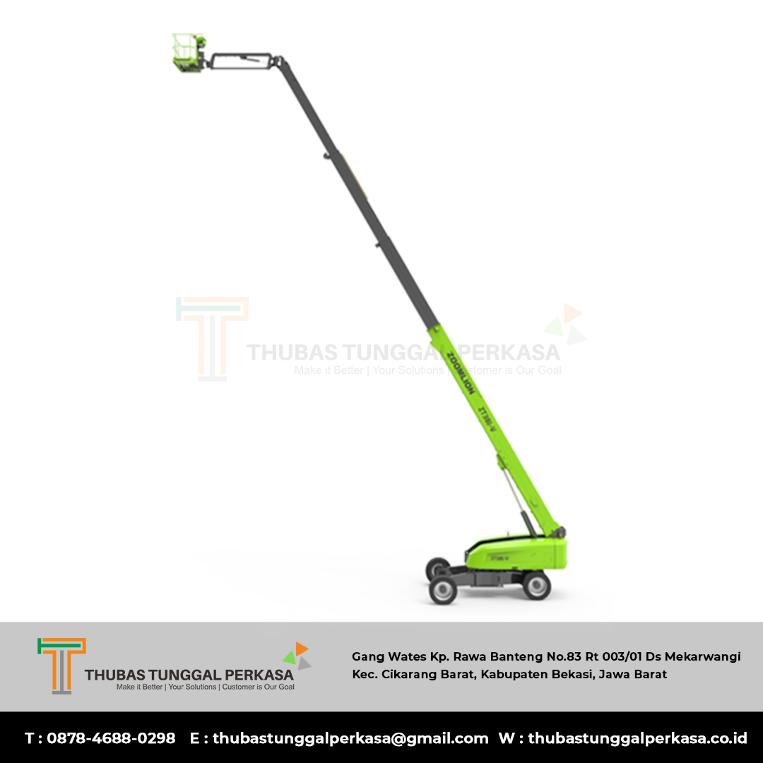 Mesin ini cocok untuk konstruksi tinggi, perawatan fasad, instalasi industri, atau rental alat berat yang membutuhkan ketinggian dan jangkauan cukup besar.